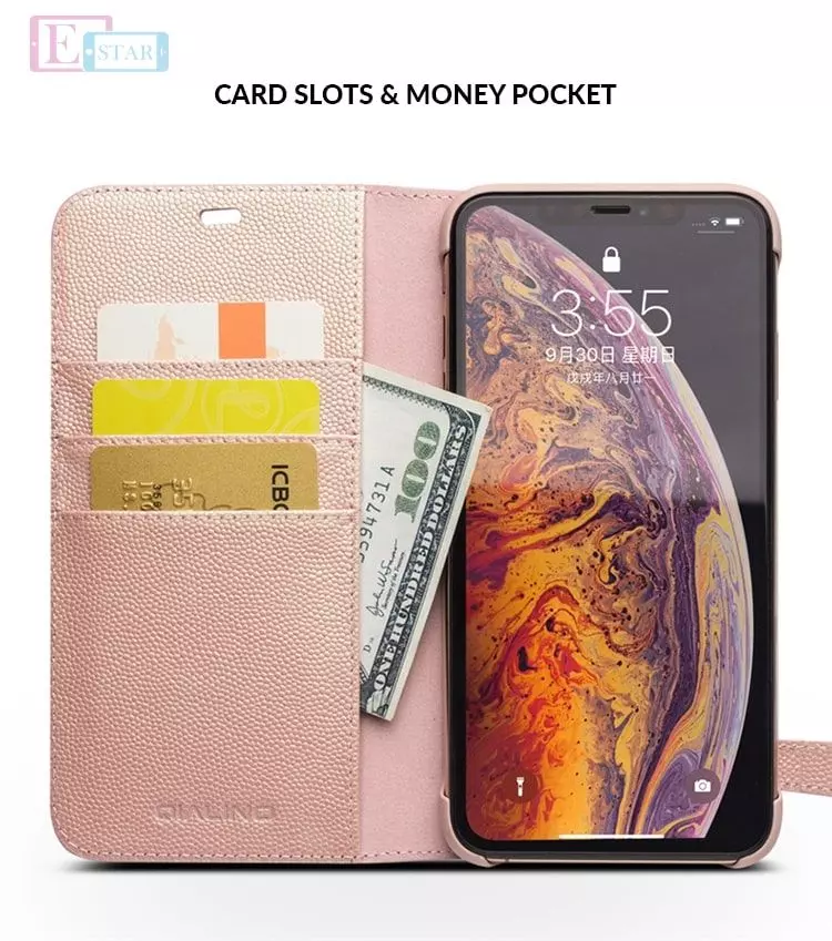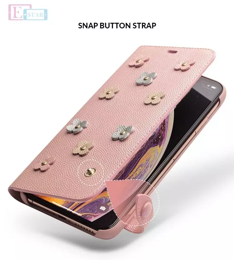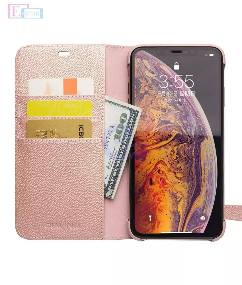 Премиальный чехол книжка с натуральной кожи Qialino Cherry Blossom Design Leather Wallet Case для iPhone Xs Pink (Розовый)