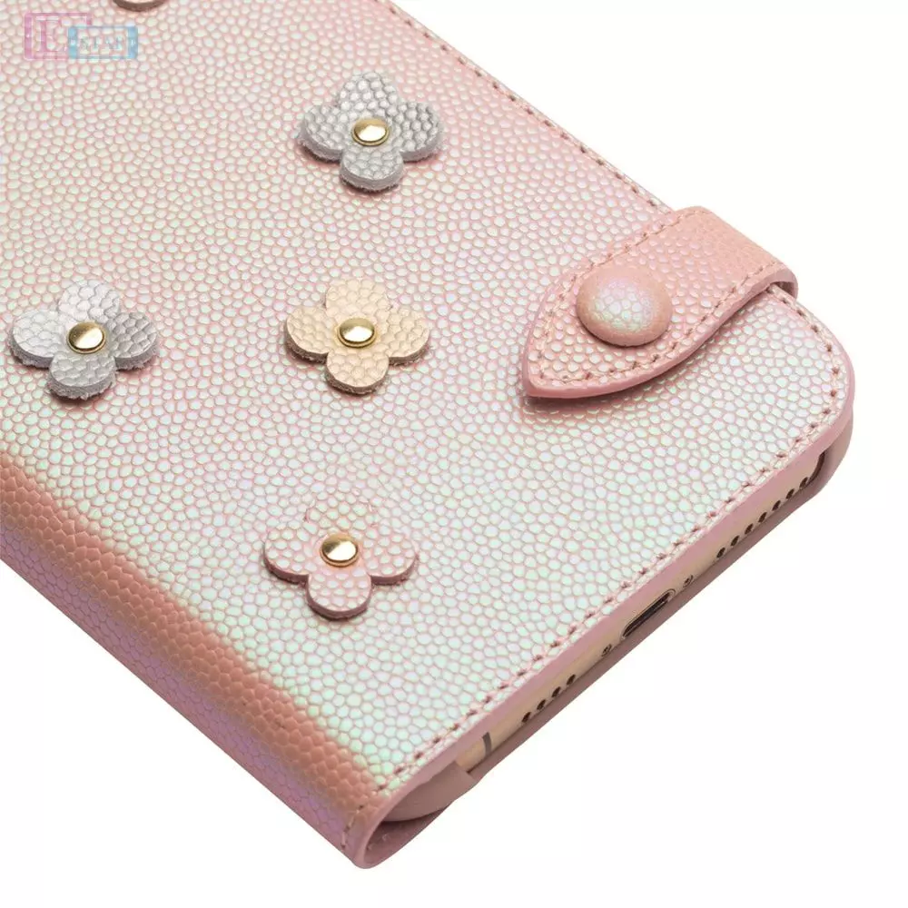 Кожаный чехол книжка для iPhone X / Xs Qialino Cherry Blossom Design Pink (Розовый)