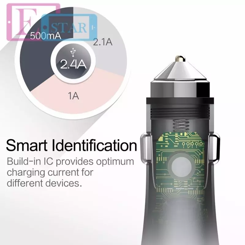 Автомобильная зарядка от прикуривателя ROCK Metal Hammer Car Charger 2.4A для Samsung, Apple, Hyawei, Asus, HTC, Meizu Rose Gold (Розовое Золото)