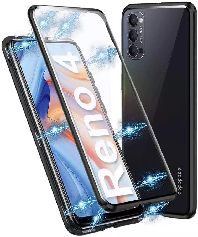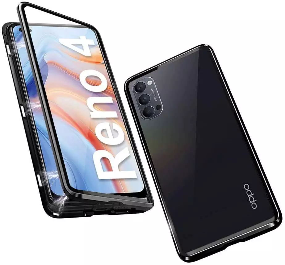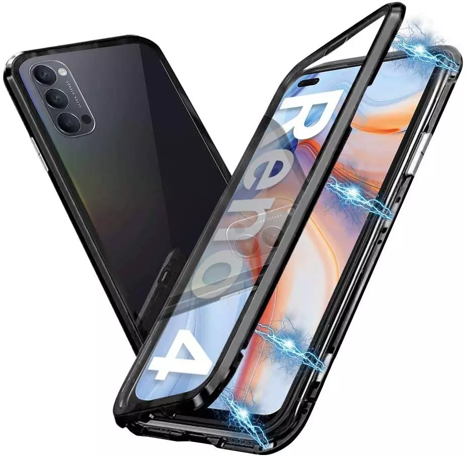 Чехол бампер для Oppo Reno 4 Lite Anomaly Magnetic 360 With Glass Black (Черный)