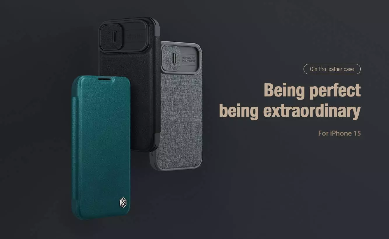Чехол книжка Nillkin Qin Pro (cloth) для iPhone 15 Plus Deep Green (Зеленый)