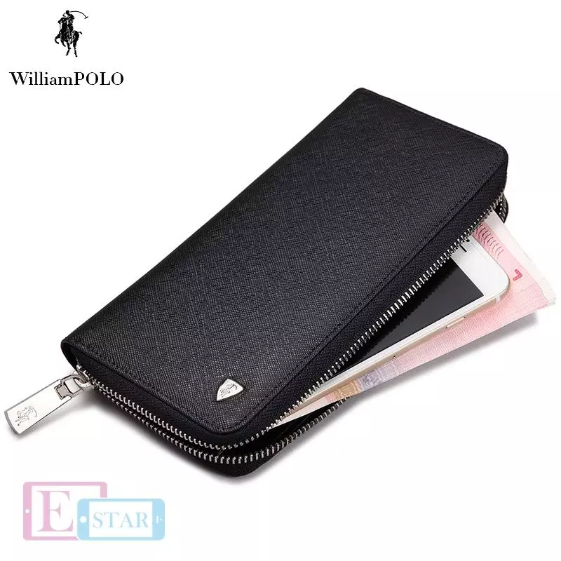 Кошелек-клатч William POLO 119 Mens Genuine Leather Wallet Cross Black (Черный)