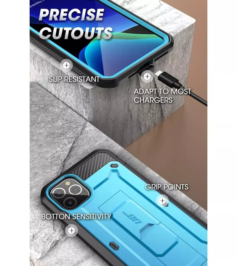 Ударопрочный двойной жёсткий чехол бампер Supcase Unicorn Beetle Pro Full Body идеально подходящий для iPhone 11 Pro Max станет прекрасным и очень полезным аксессуаром, который поможет сохранить ваш телефон в хорошем состоянии и уберечь его от внешних повреждений. Он состоит из двух частей, передней крышки с защитным экраном и задней крышкой с бампером. Поверхность чехла создана со специальным рельефом, который не дает телефону выскользнуть из рук или соскользить с гладкой поверхности. Благодаря плотному прилеганию чехла — книжки к телефону и отлично продуманному дизайну он прекрасно справляется с защитой смартфона от пыли, грязи и влаги.