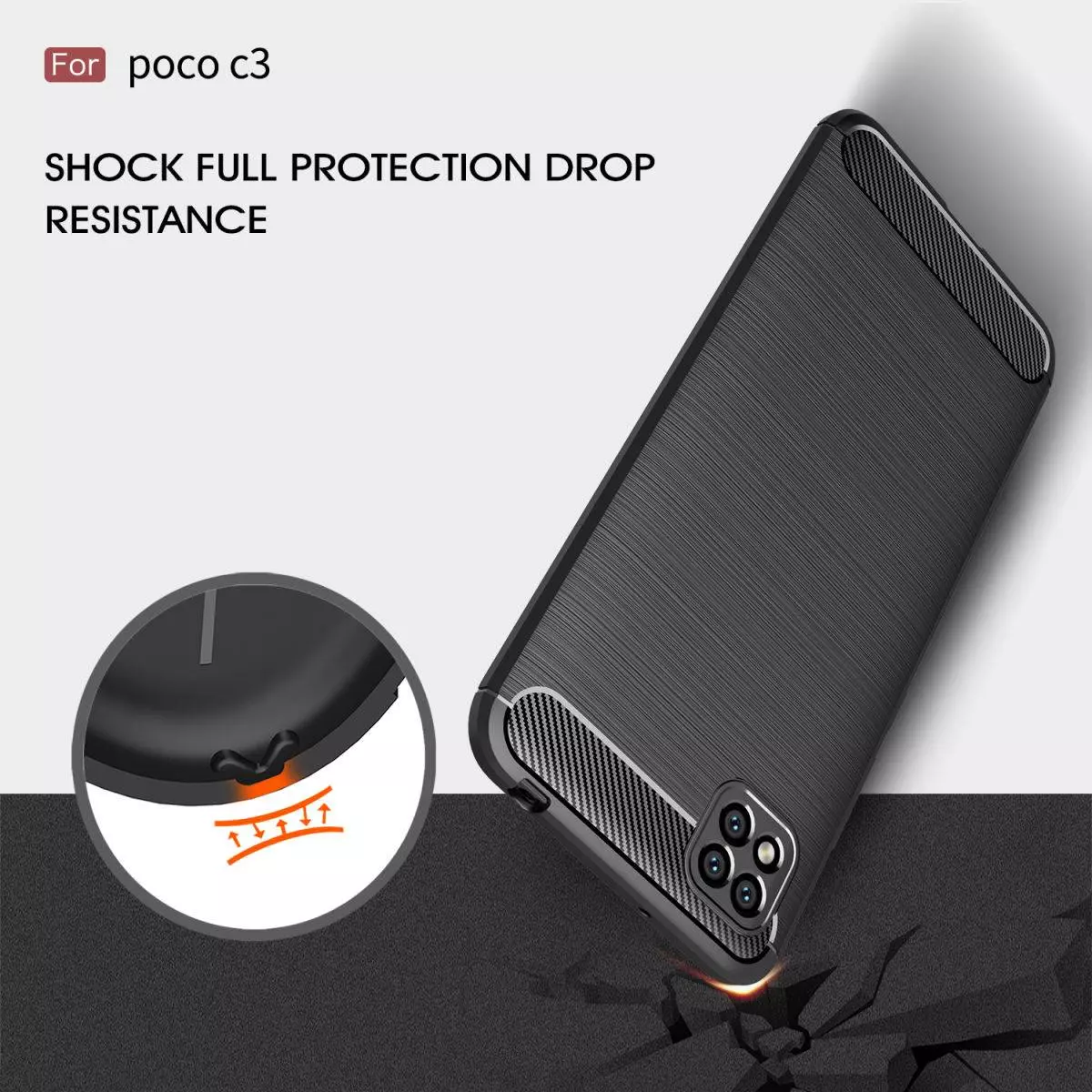 Противоударный чехол Rugged Armor Fiber для Xiaomi Poco C3-Чорний