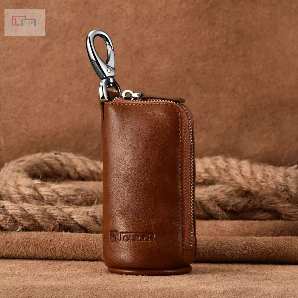 Универсальный кошелек Icarer Vegetable Tanned Leather Zipper Key and Pocket Money Holder Light Brown (Светло-коричневый)